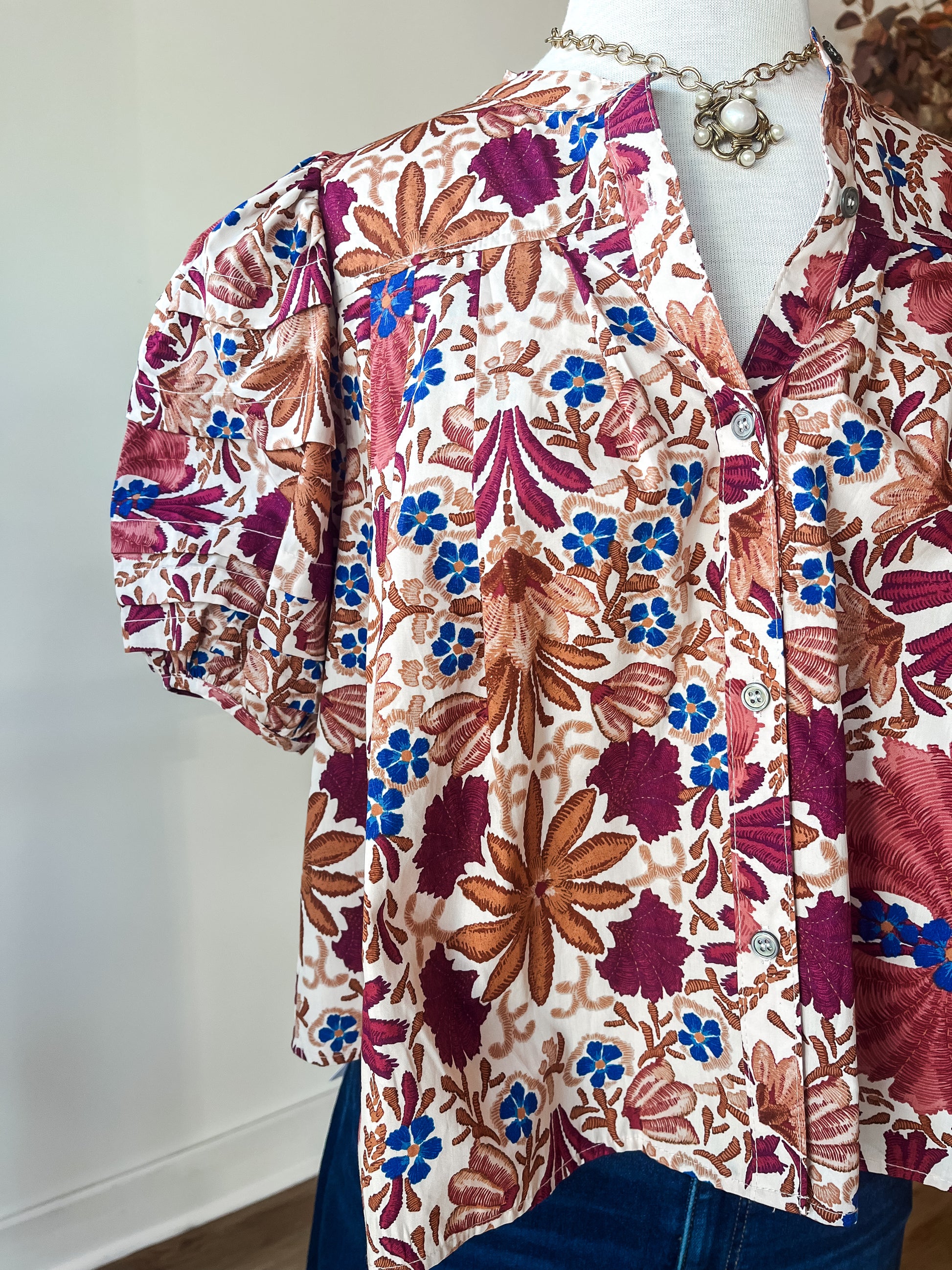 Elevate your wardrobe with the Amber Puff Sleeve Top, featuring delicate floral detailing that adds subtle elegance. The puff sleeves provide a structured, fashion-forward silhouette, while the button-up closure offers versatility and ease. Crafted for both style and comfort, this top effortlessly transitions from casual to refined looks.
