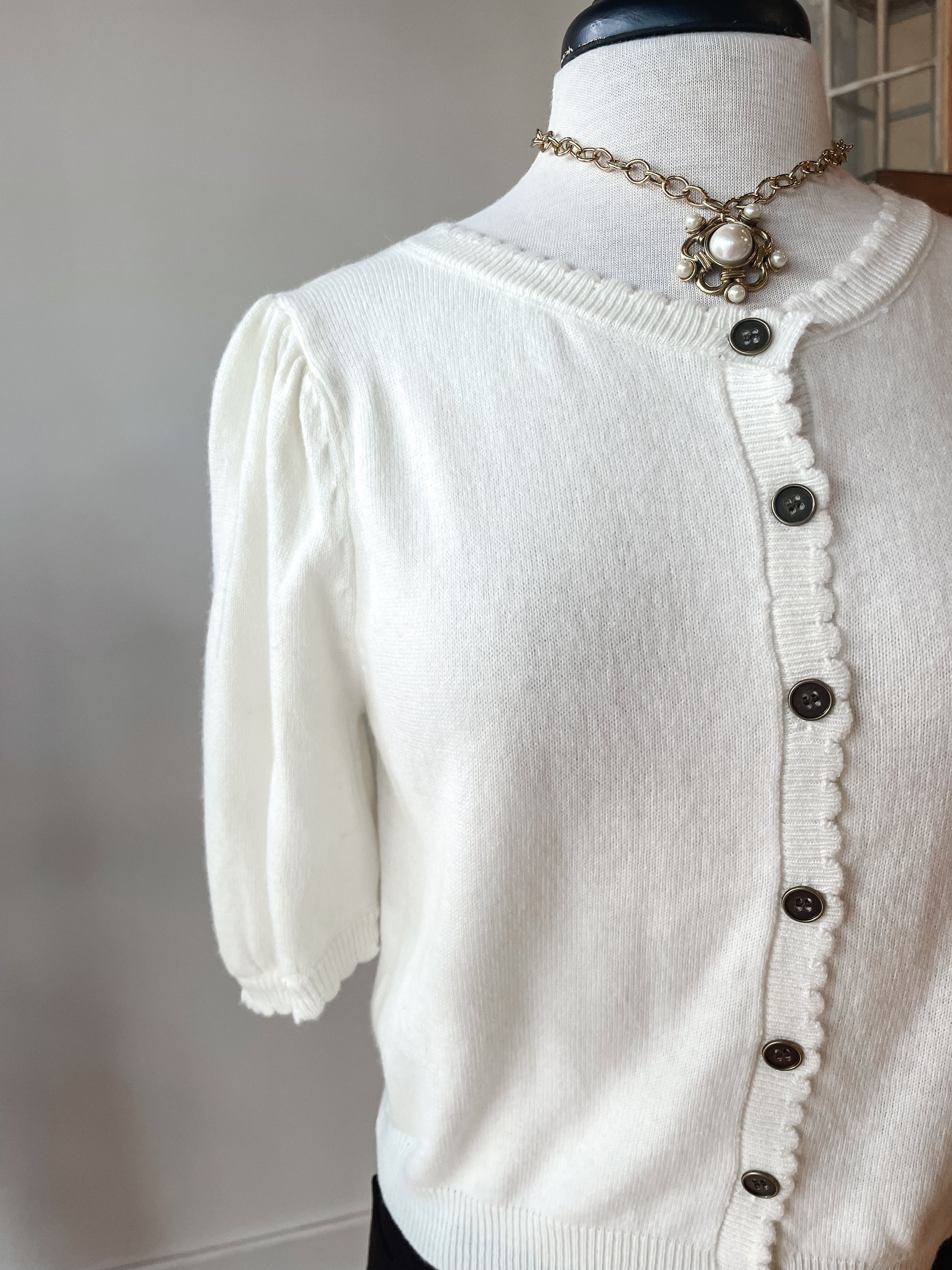 The Josie Knit Cardigan features stylish puff short sleeves and a classic button-down design, combining elegance with comfort. Crafted for a refined silhouette, it offers lightweight warmth and versatility, making it ideal for layering in any season. Perfect for elevating both casual and dressier outfits with a touch of expert-crafted detail.